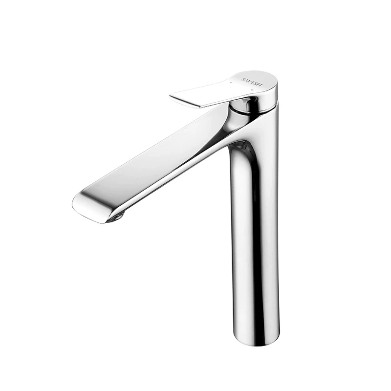 The basin mixer’s tall, angular shape delivers a graceful water flow, offering ample space for comfort. Its geometric design adds sculptural beauty, blending functionality with elegance.
