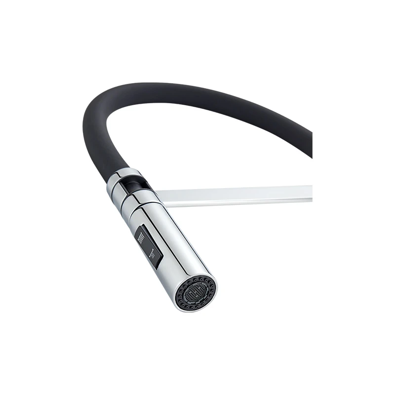Pull-out hose with spray functionality allows effortless cleaning of every corner of the sink.